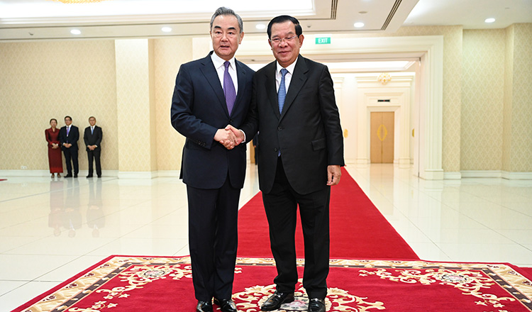 Уходящий премьер-министр Хун Сен с министром иностранных дел Китая Ван И на недавней встрече в Пномпене. КТ/Хем Сованнара К концу этого года товарооборот между Камбоджей и материковым Китаем превысит 12 миллиардов...